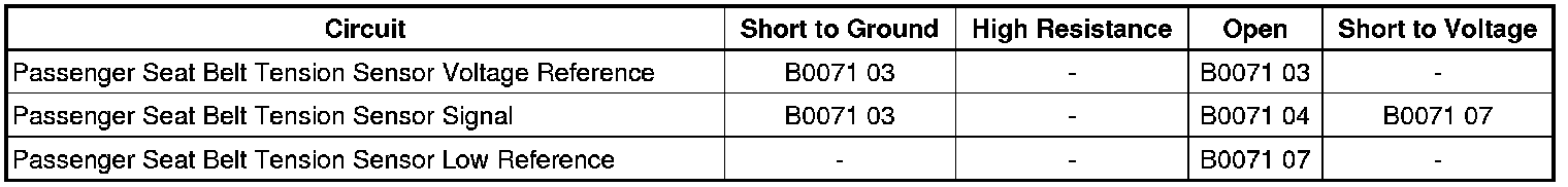 - Passenger Seat Belt Tension Sensor Circuit Voltage Below Threshold