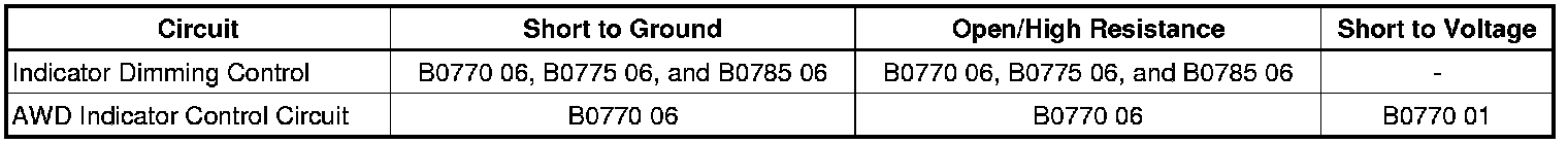 * A short to ground on the AWD indicator control circuit will cause the AWD indicator to remain ON at all times.