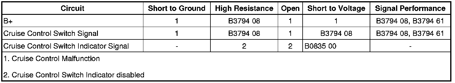 * The BCM detects excessive current in the cruise control indicator signal circuit.