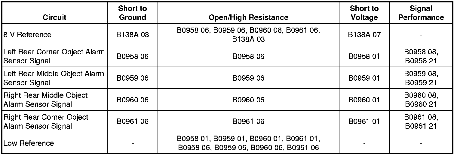 - Parking Aid Rear Sensor 1 Circuit Signal Invalid