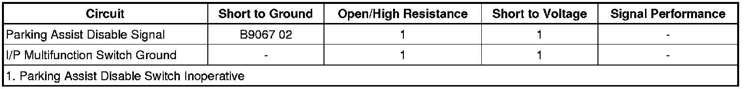 - Parking Aid Switch Circuit Short to Ground