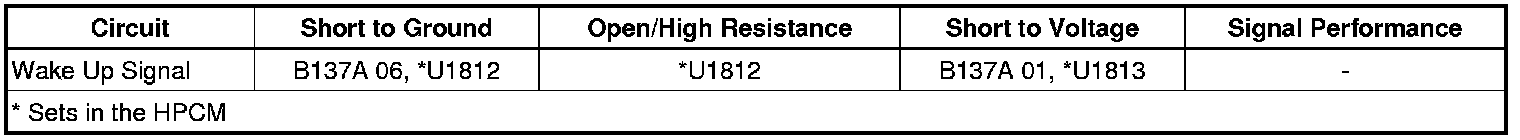 The wake up signal circuit is energized by the serial data gateway (SDG) module to activate the drive motor generator power inverter module (PIM) and the drive motor generator battery control module. If the wake up signal is not responded to by all three modules, this DTC sets in the SDG module.
