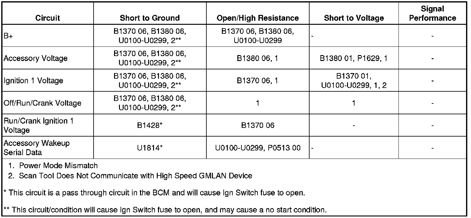 * The power modes and controls are determined using BCM logic. Comparing the Body Control Module Power Mode data display parameters listed in Circuit/System Verification will determine if there is a power mode fault.