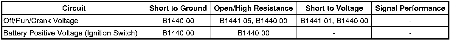 * BCM senses an open or short to voltage on the off/run/crank voltage circuit when both ignition accessory/run and ignition run/crank parameters are active.