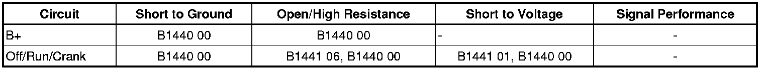 - Device Ignition OFF, RUN, and CRANK Circuit Short to Battery
