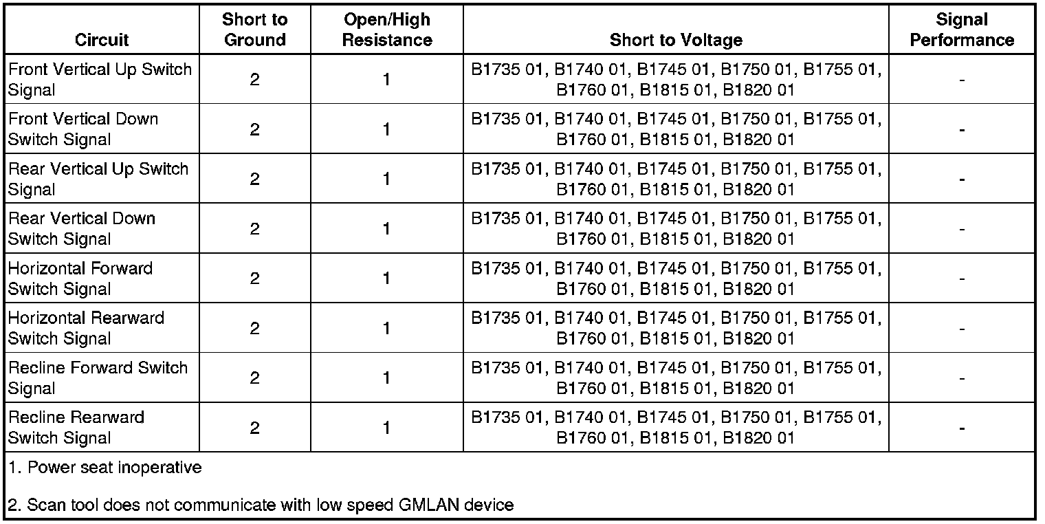 - Seat Rear Up Switch Circuit Short to Battery