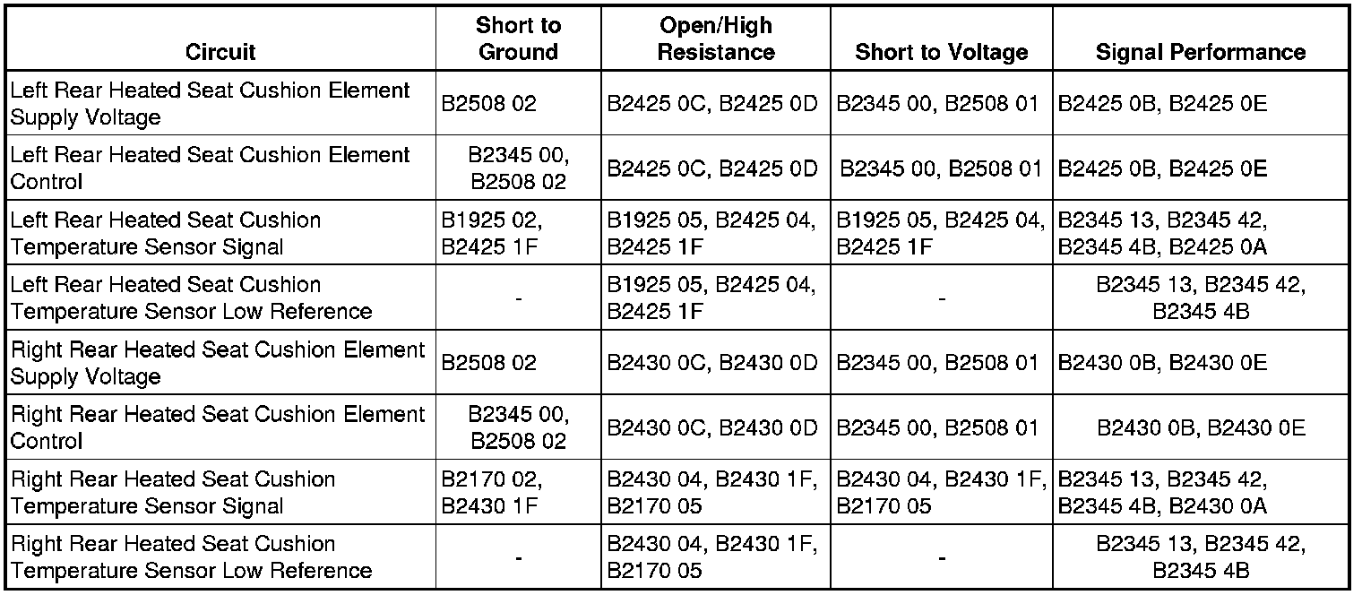 - Left Seat Cushion Heater Sensor Circuit Shorted to Ground