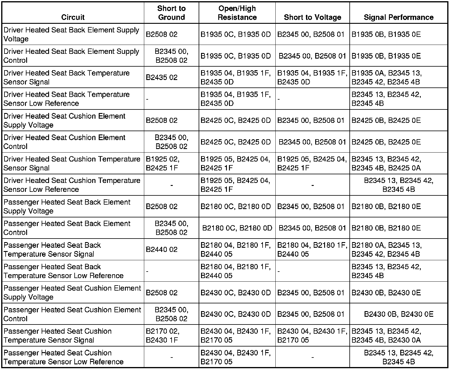 - Left Seat Back Heater Sensor Circuit Short to Battery or Open