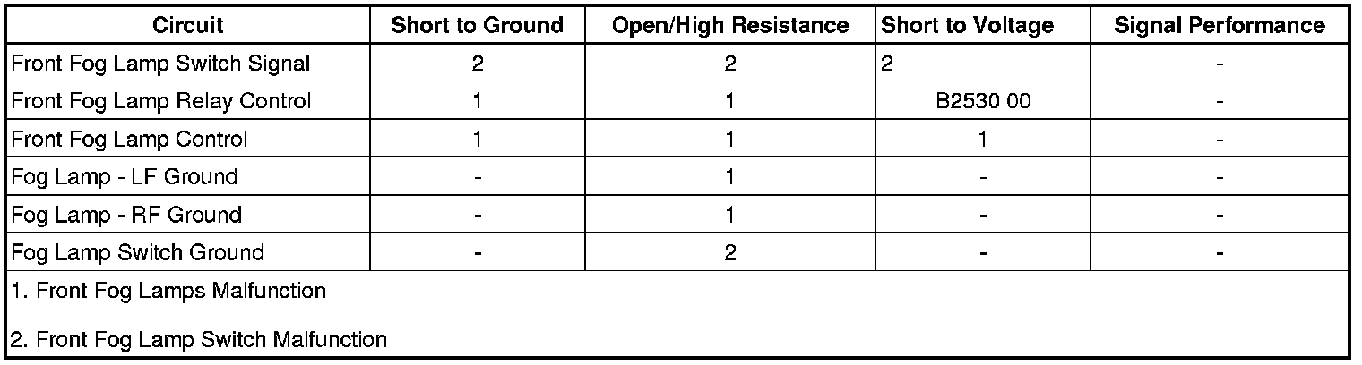 • If the fog lamp front does not activate and the circuit fuse is good, test the control circuit for an open/high resistance. If the circuit tests normal, test or replace the fog lamp front.