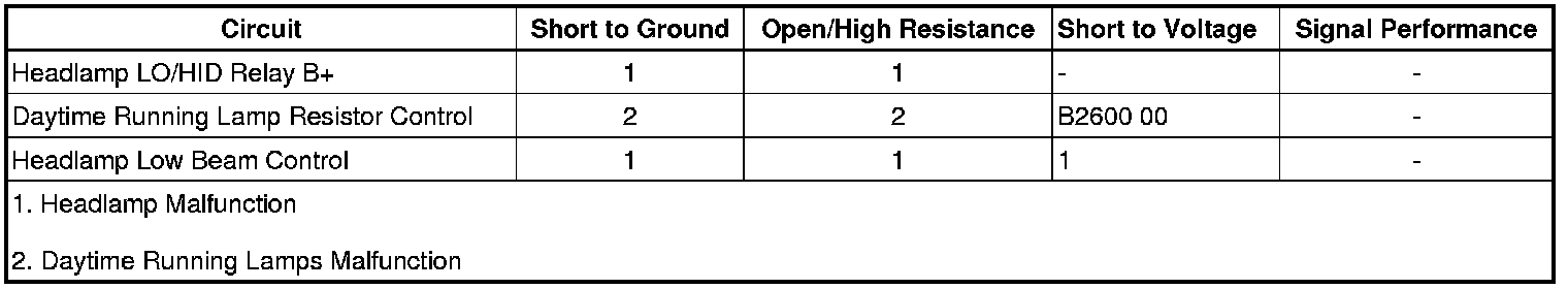 • If the test lamp is always OFF, test the signal circuit for a short to voltage or an open/high resistance. If the circuit tests normal, replace the DRL resistor.