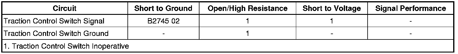 The body control module (BCM) monitors the traction control switch. When the traction control switch is pressed once, the BCM will request the electronic brake control module (EBCM) via serial data to disable the traction control. The EBCM will request the instrument cluster via serial data to turn the traction control off and stability control off indicator ON to notify the driver of the deactivation.