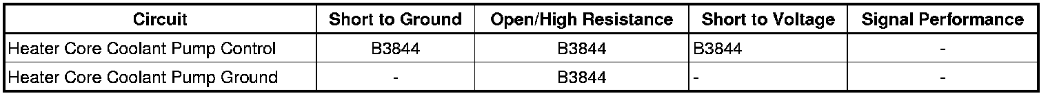• If the heater core coolant pump does not activate, test the relay controlled output circuit for an open/high resistance. If the circuit tests normal, test or replace the heater core coolant pump.