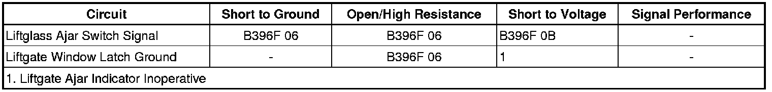 - Liftglass Ajar Output Signal Circuit Short to Ground or Open