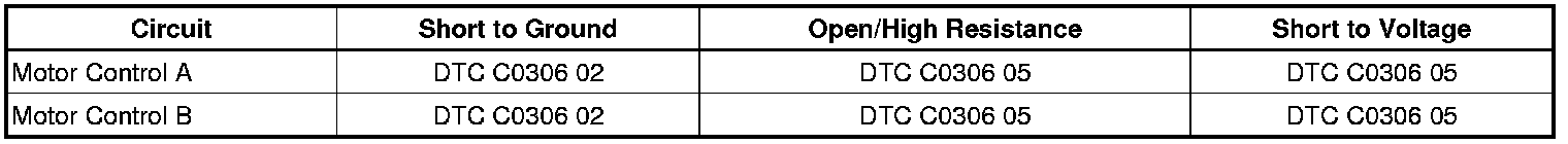 • If the test light stays ON when commanded OFF, test the motor control A circuit for a short to voltage. If all circuits and connections test normal, reprogram the TCCM. If the DTC continues to set replace the TCCM.