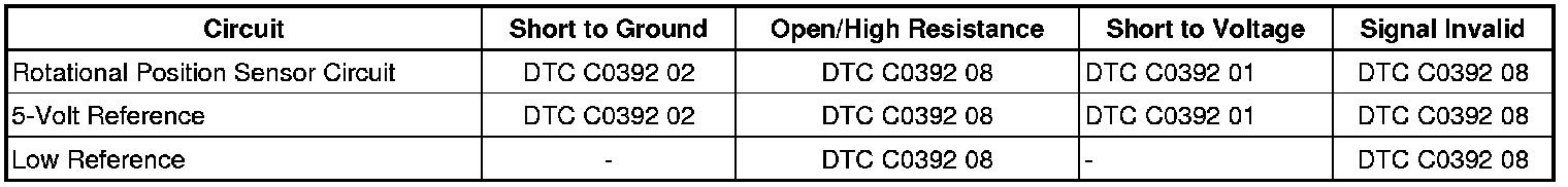 • If the voltage is greater than the specified range, test the rotary position sensor signal circuit for a short to voltage. If all circuits and connections test normal, test the TCCM for proper operation.