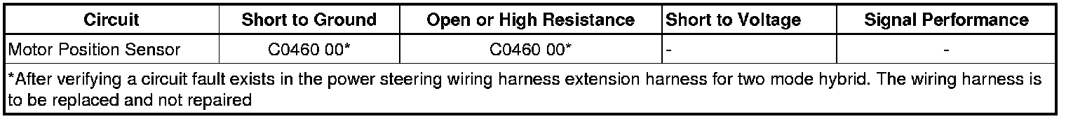Note: After verifying a circuit fault exists in the Power Steering Wiring Harness Extension Harness for Two Mode Hybrid. The wiring harness is to be replaced and not repaired.