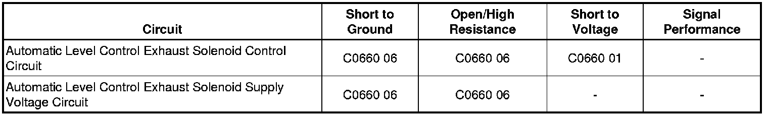 - Level Control Exhaust Circuit Short to Ground or Open Circuit