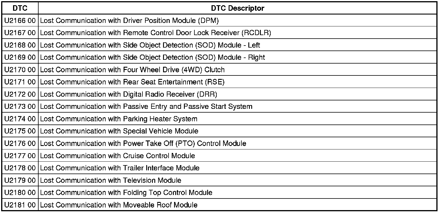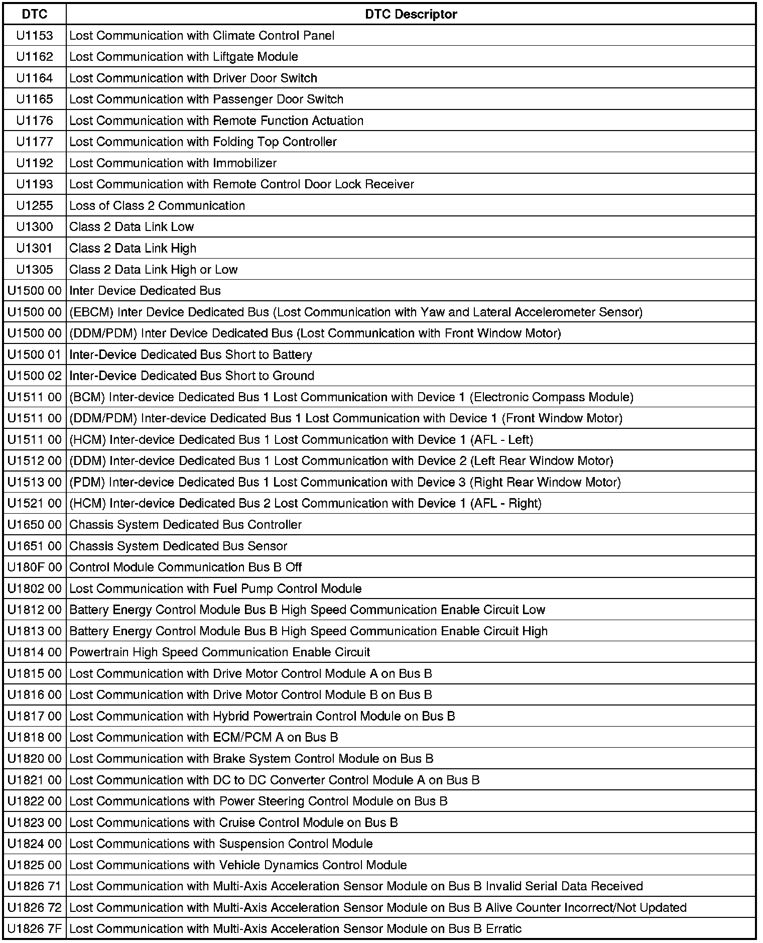 This list includes all Data Communications related U-code DTCs in alphanumeric order with descriptors for all modules. Not all DTCs listed will be applicable to all vehicles.