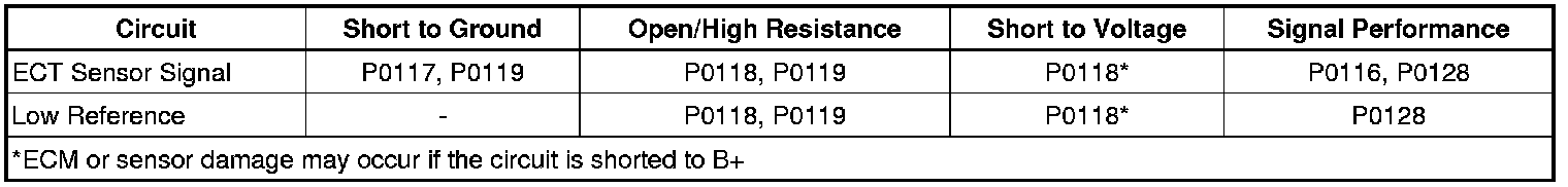 - Engine Coolant Temperature (ECT) Sensor Circuit Low Voltage