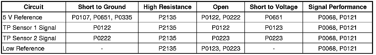 * DTC P0120, P0122, P0123, P0220, P0222, P0223, and P2135 are Type A DTCs.
