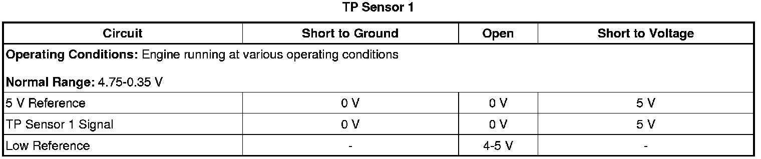 - Throttle Position (TP) Sensor 1 Circuit Low Voltage