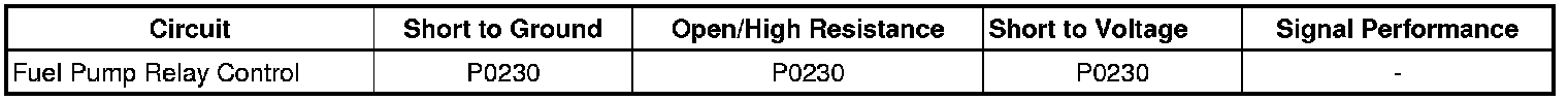 The engine control module (ECM) sends the fuel enable signal to the fuel pump control module (FPCM). The control module monitors the voltage on the fuel pump relay control circuit. If the control module detects an incorrect voltage on the fuel pump relay control circuit, a fuel pump relay control DTC sets.