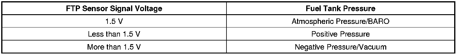 1. Ignition ON and fuel cap removed, verify the scan tool Fuel Tank Pressure Sensor parameter is between 1.3-1.7 volts.
