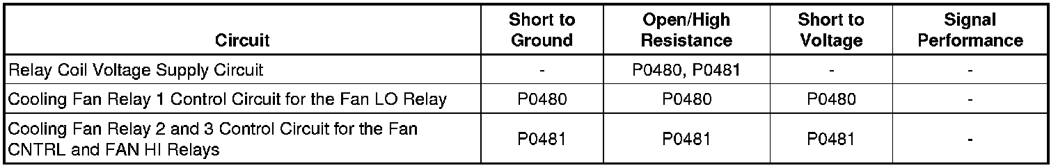 * DTCs P0480 and P0481 run continuously when the conditions above are met.