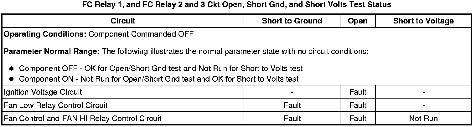 * FC Relay 2 and 3 Ckt Open, Short Gnd, and Short Volts Test Status