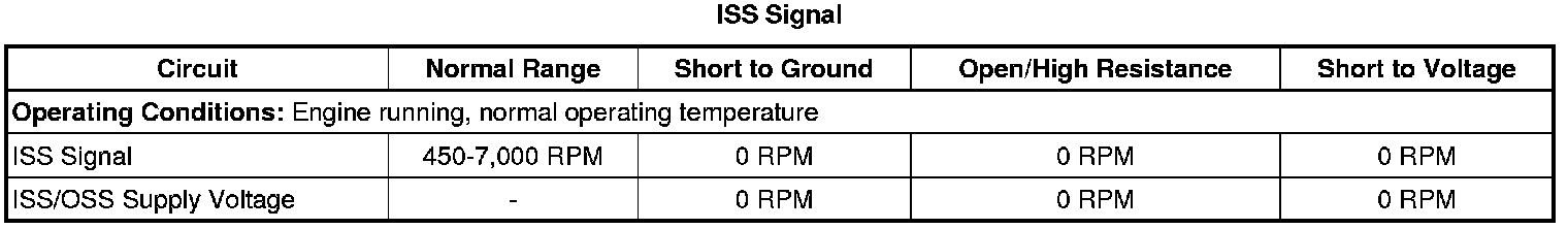 2. Engine idling in Park, observe the Transmission ISS parameter on the scan tool while varying the engine speed. The Transmission ISS parameter should vary with the engine speed and not drop out.