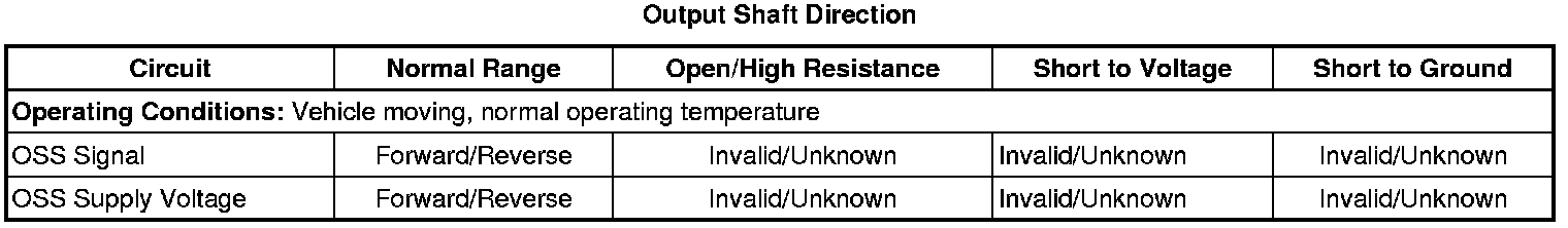 * The transmission control module detects no signal from the Automatic Transmission Output Shaft Speed Sensor.
