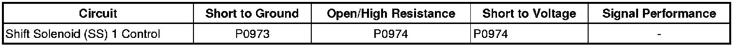 The control solenoid valve assembly detects an internal low voltage electrical malfunction of the shift solenoid 1 control circuit when shift solenoid 1 is commanded OFF for 1 second.
