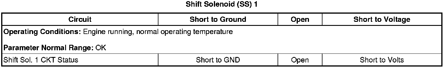 - Shift Solenoid (SS) 1 Control Circuit Low Voltage