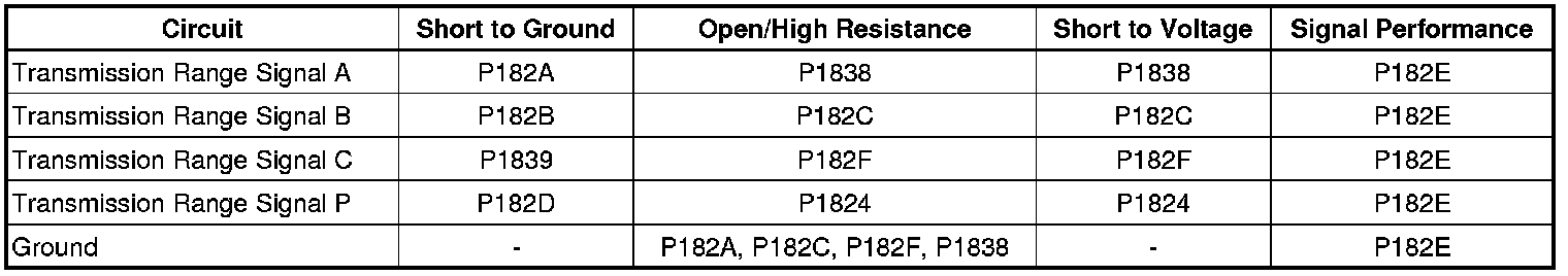 DTC P1824, P182A-P182F, P1838, or P1839