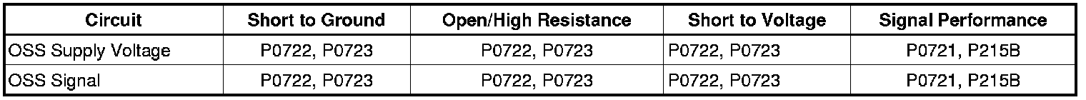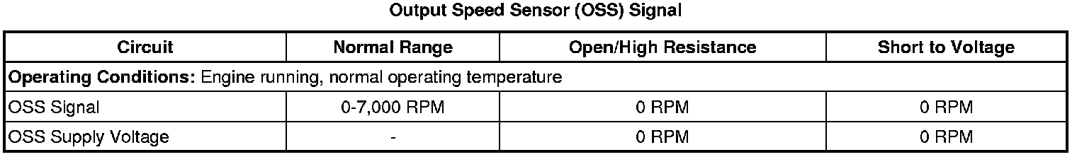1. Verify that OSS DTCs P0721, P0722, or P0723 are not set in the TCM.