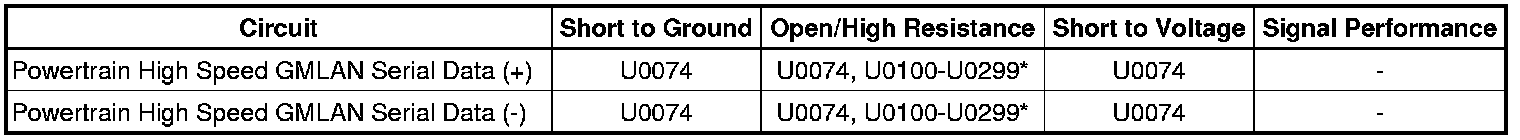 * Communication may be available between the BCM and the scan tool with the Powertrain High Speed GMLAN serial data system inoperative. This condition is due to the BCM using both the high and low speed GMLAN systems.