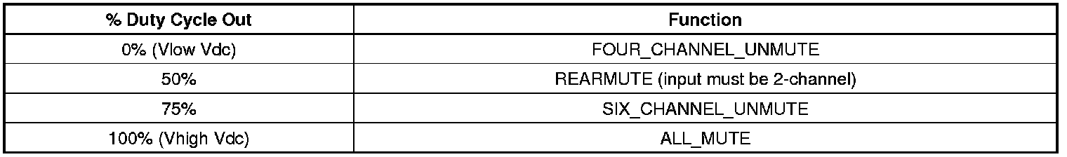 The function table below shows the four possible amplifier mute functions.