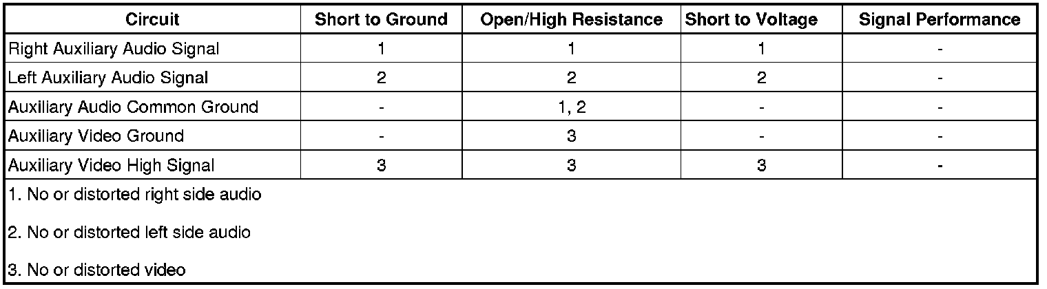 4. Test for less then 5 ohm between the terminals on the radio X3 harness connector and the external terminals on the audio/video adaptor listed below: