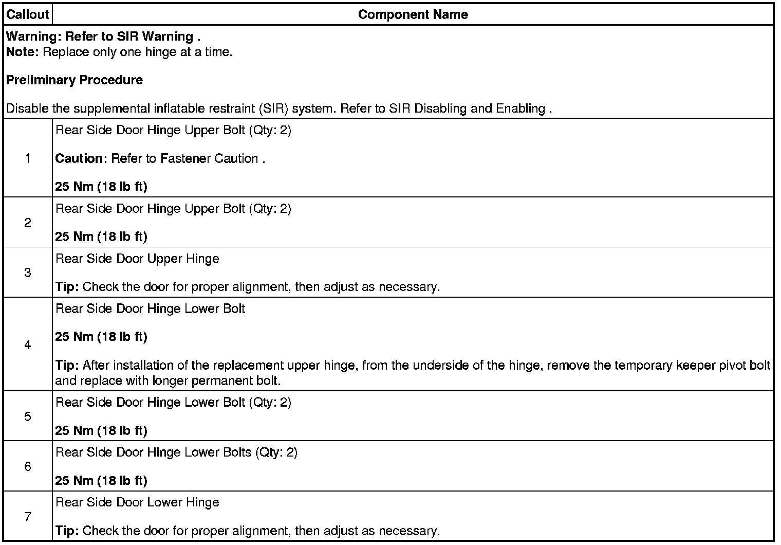 Rear Side Door Upper Hinge and Lower Hinge Replacement