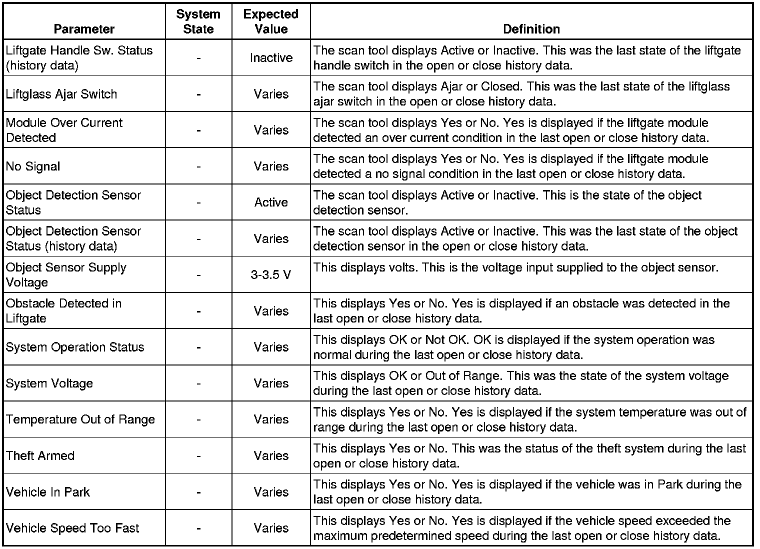 Liftgate Close Actuator Motor Control Module Scan Tool Information