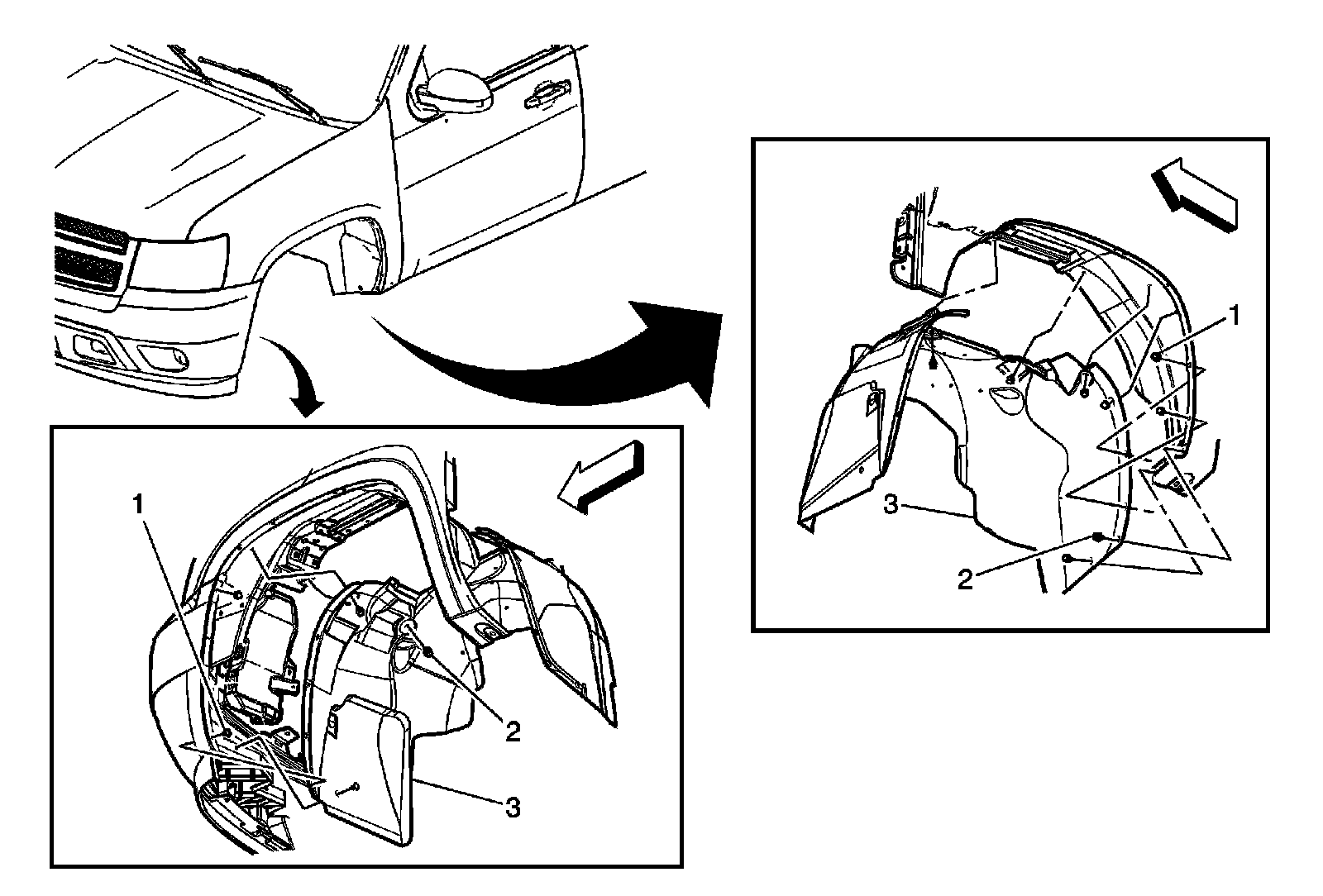 TipBefore attempting to remove the wheelhouse liner remove any plastic retainers and/or bolts passing through or attached to the left side front wheelhouse liner.