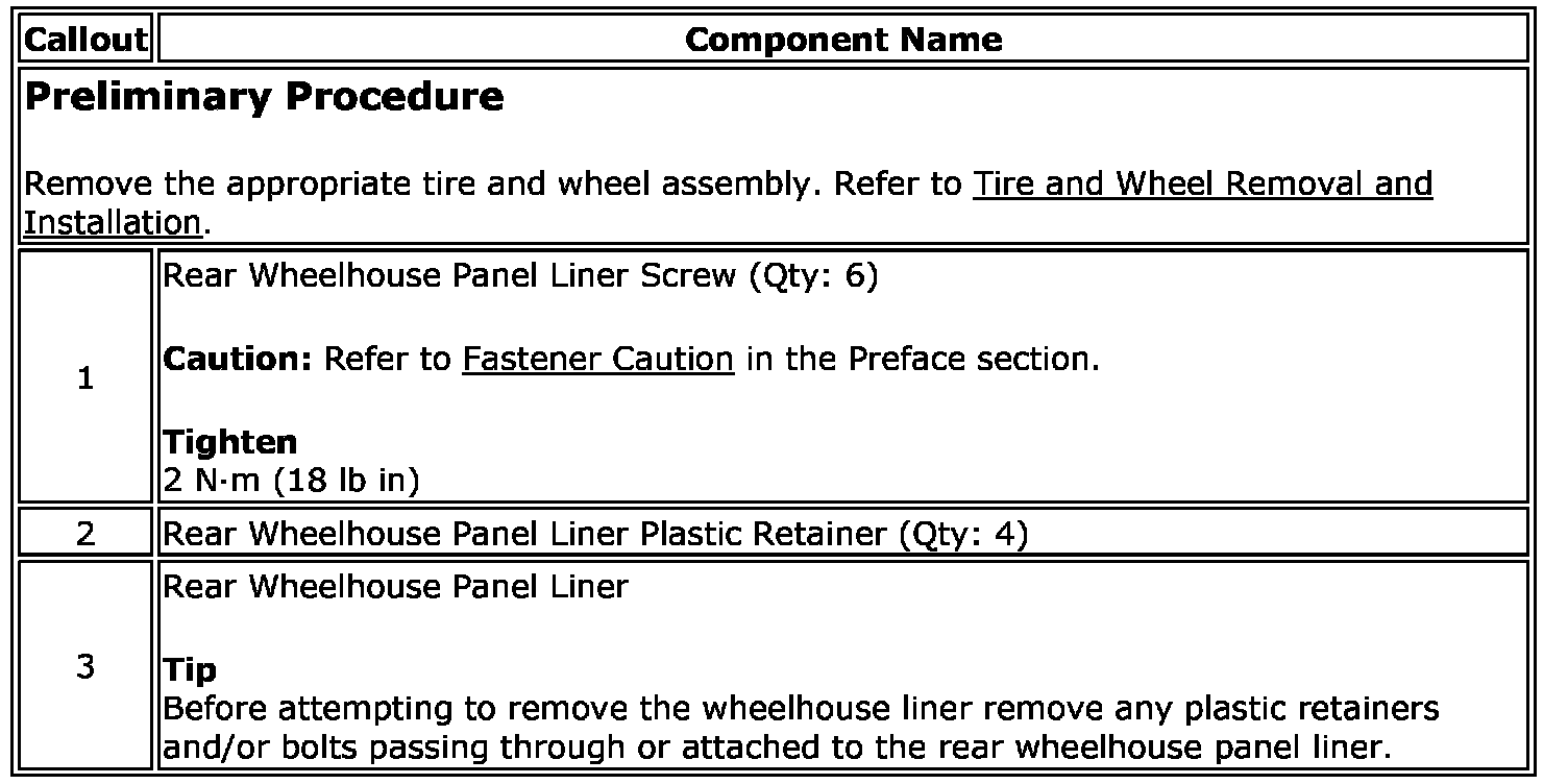 Rear Wheelhouse Panel Liner Replacement (RPO HP2)