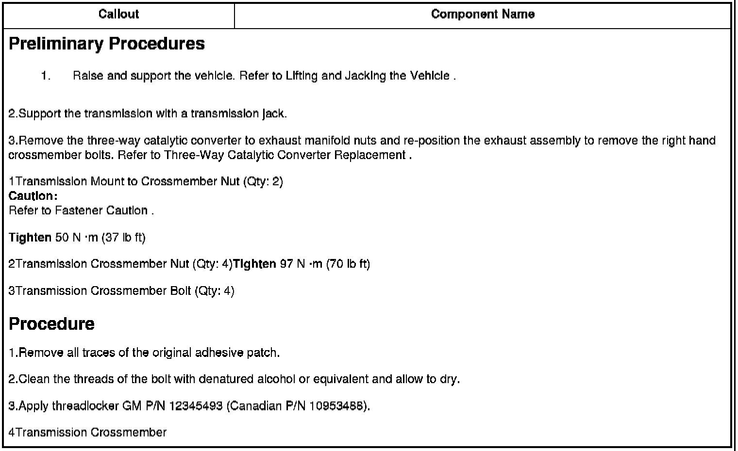 2Transmission Crossmember Nut (Qty: 4)Tighten 97 N �m (70 lb ft)