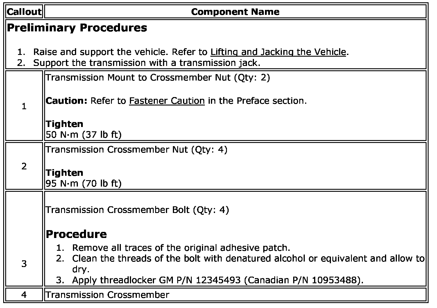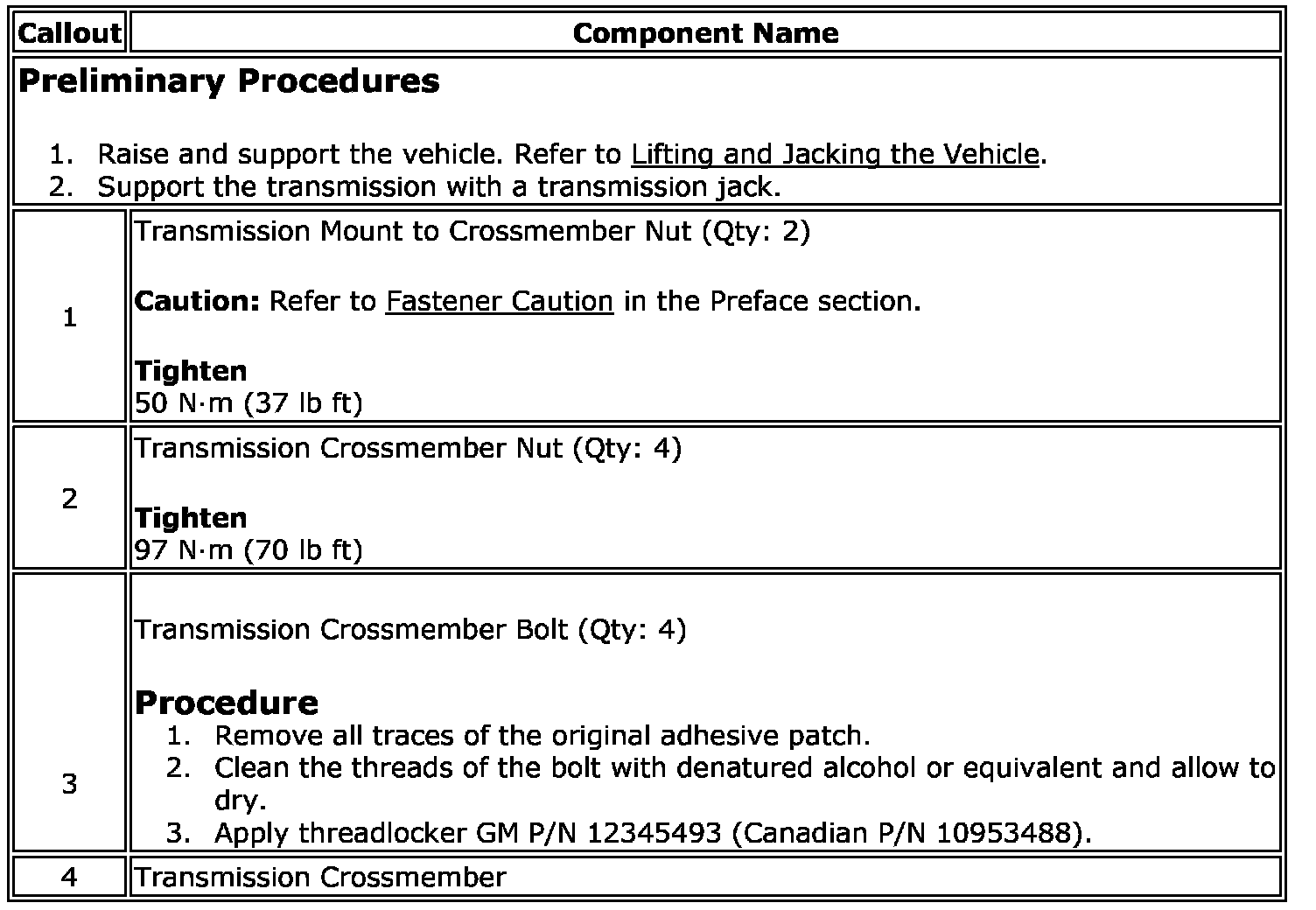 Transmission Support Crossmember Replacement (4WD 1500 Series)