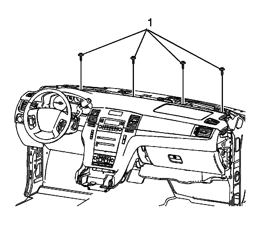 5. Install the 4 bolts (1) securing the instrument panel upper trim panel to the cowl and tighten to 9 Nm (80 lb in).