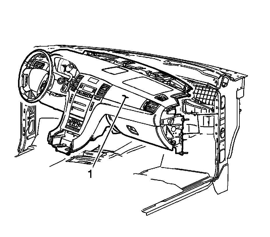 17. With the aid of an assistant pull the instrument panel assembly (1) rearward in the vehicle until the locator pin on each side clears the opening.