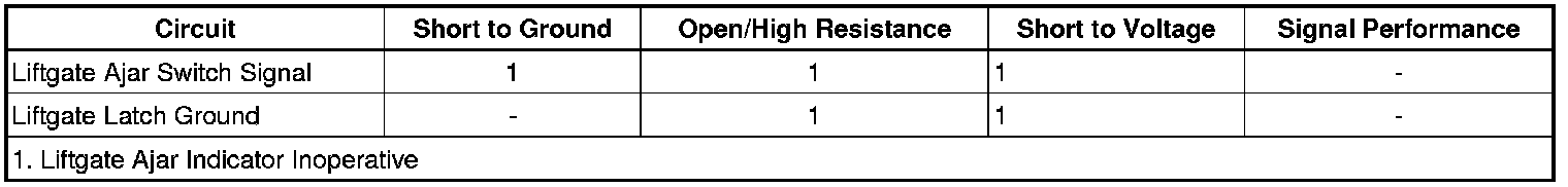 The body control module (BCM) receives an input from the liftgate ajar switch. The ajar switch is normally open when the liftgate is fully closed. When the liftgate is opened, the ajar switch contacts close providing a path to ground. The driver information center (DIC) located at the bottom of the instrument panel cluster (IPC), illuminates the REAR ACCESS OPEN message when the liftgate is open. The IPC receives a serial data message from the BCM indicating the liftgate ajar status.