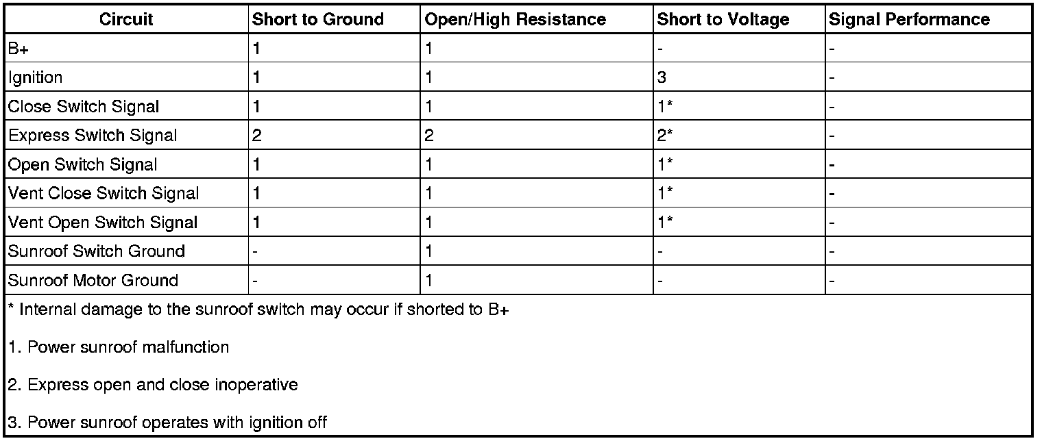 • If the express open feature does not function, refer to Power Sunroof Express Feature Malfunction.