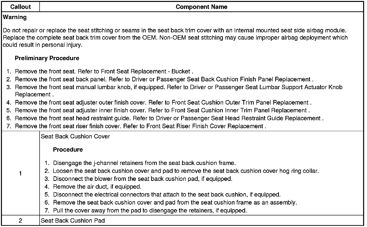 Driver or Passenger Seat Back Cushion Cover and Pad Replacement