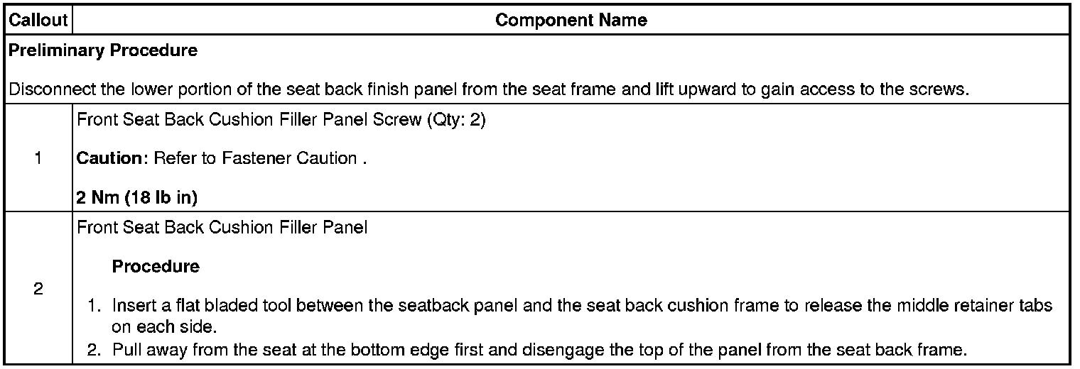 Driver or Passenger Seat Back Cushion Finish Panel Replacement